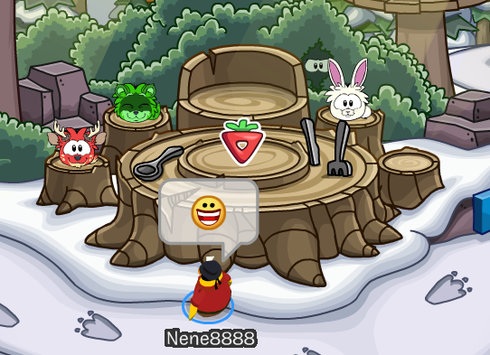 Entonces, cuando coloques el Puffito Silvestre Rojo en la mesa la Entrenadora de Puffles te dirá "¡Un Puffle Ciervo! ¡Dudo que se haya comido el pastel de pescado del Refugio" Seguramente, no fue él: